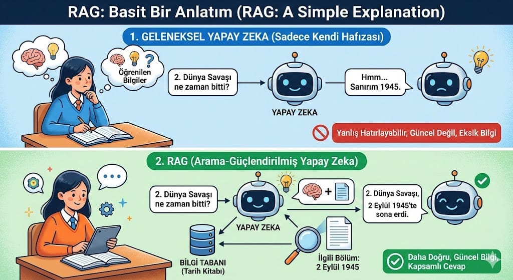 Cevap: RAG (Retrieval-Augmented Generation – Geri Getirim Artırılmış Üretim).